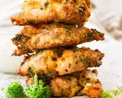 Slice the chicken into bite-sized pieces and add them to a large bowl. Then add the chopped broccoli, mozzarella, seasonings, and eggs. Mix until well combined.